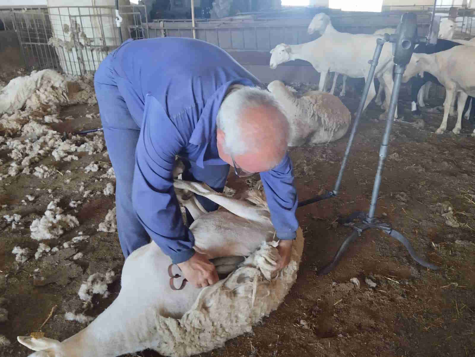 cambiando de posición para continuar el esquilado «tirando lañás